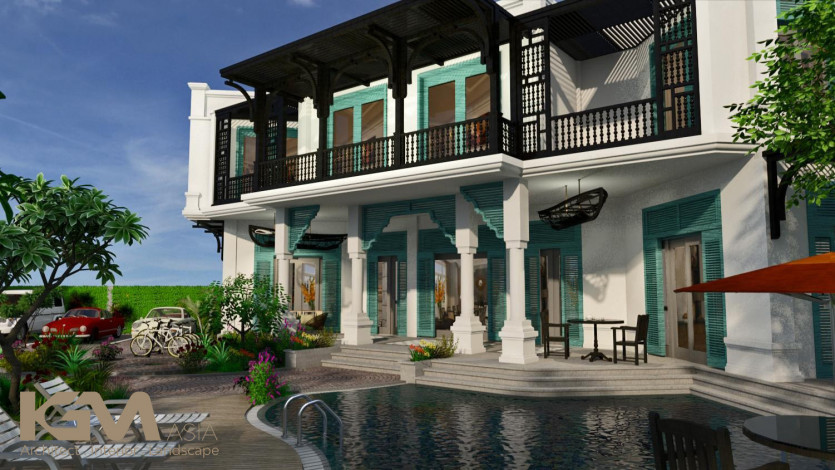Là một công trình Biệt thự sân vườn mang đậm dáng dấp của một Hội An hội tụ và giao thoa văn hóa Đông – Tây, Hạ Vy Villa gây ấn tượng bởi quyết định sáng tạo là sử dụng tông chủ đạo xanh ngọc kết hợp cùng hệ thống cây xanh hoa lá, và tông màu trầm của bê tông mài – một chất liệu mang màu sắc đang rất được ưa chuộng hiện nay.